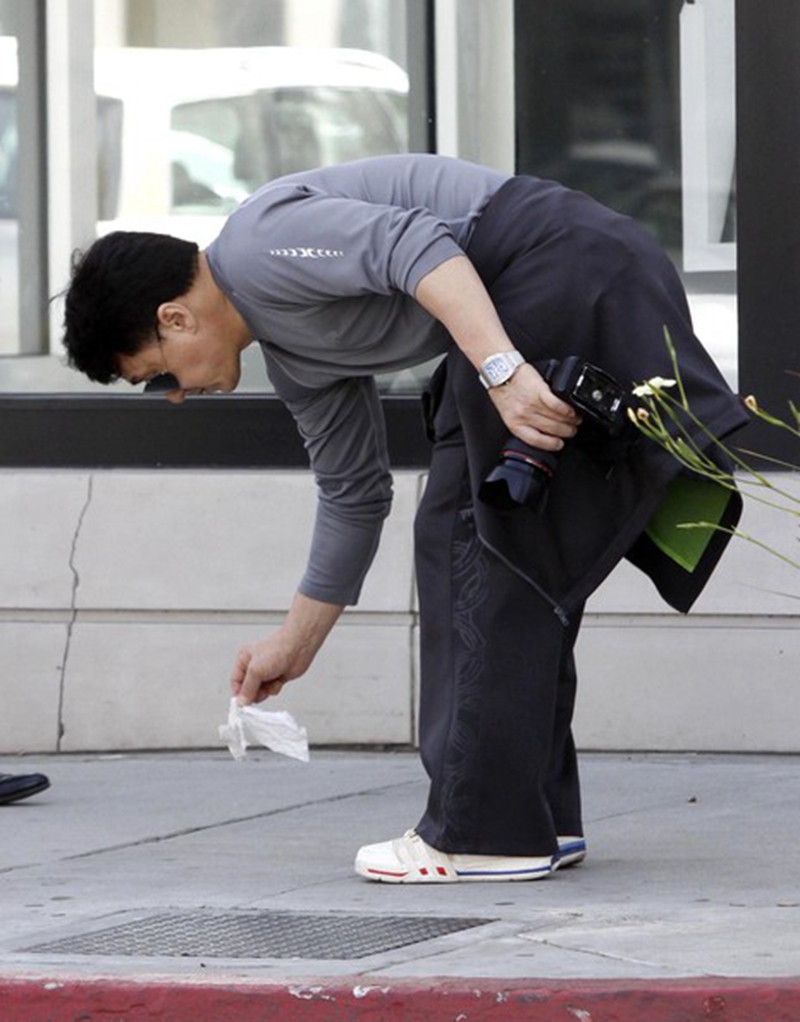 除了球鞋,成龙大哥的服饰搭配更是一绝。