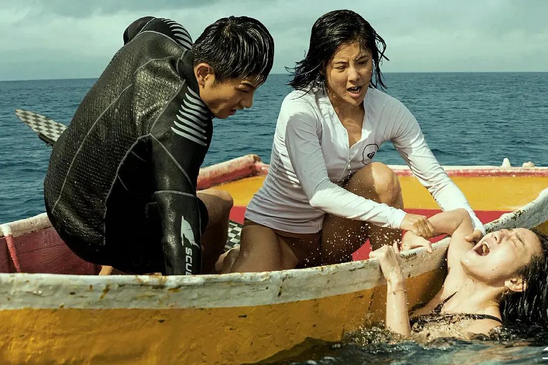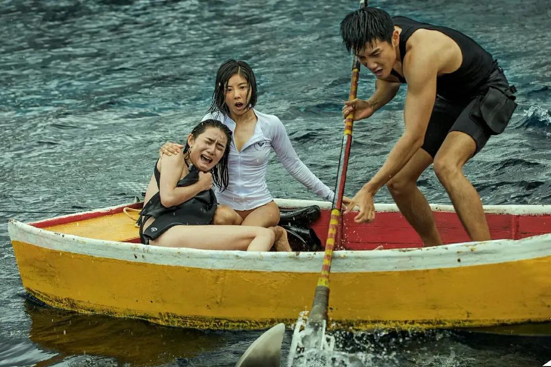 赵奕欢在片中是绝对女主角,她在剧中的形象也十分“犯规”,可以说全片最大的看点,不是那一头如同被拉满仇恨值的大鲨鱼,而是赵奕欢的“身材”。