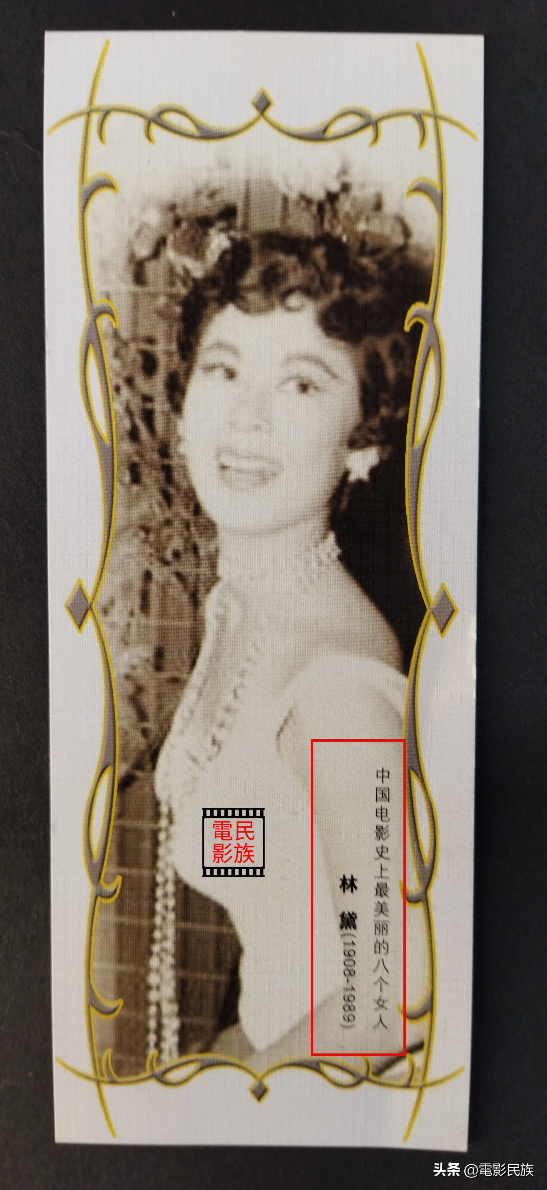 四张书签的其中一张——林黛。香港历史上名头最响的国语片女演员。她创下蝉联四届亚洲影展最佳女主角的记录,至今无人能破,她就是有“中国梦露”之称的林黛!