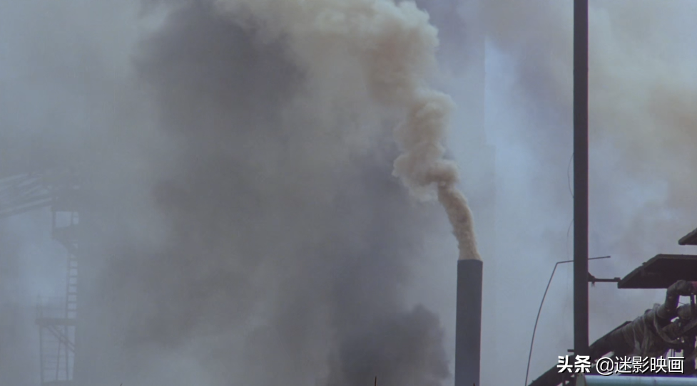 此时小女孩却抬头望向天空,原来天空中正飘着一股黑烟。