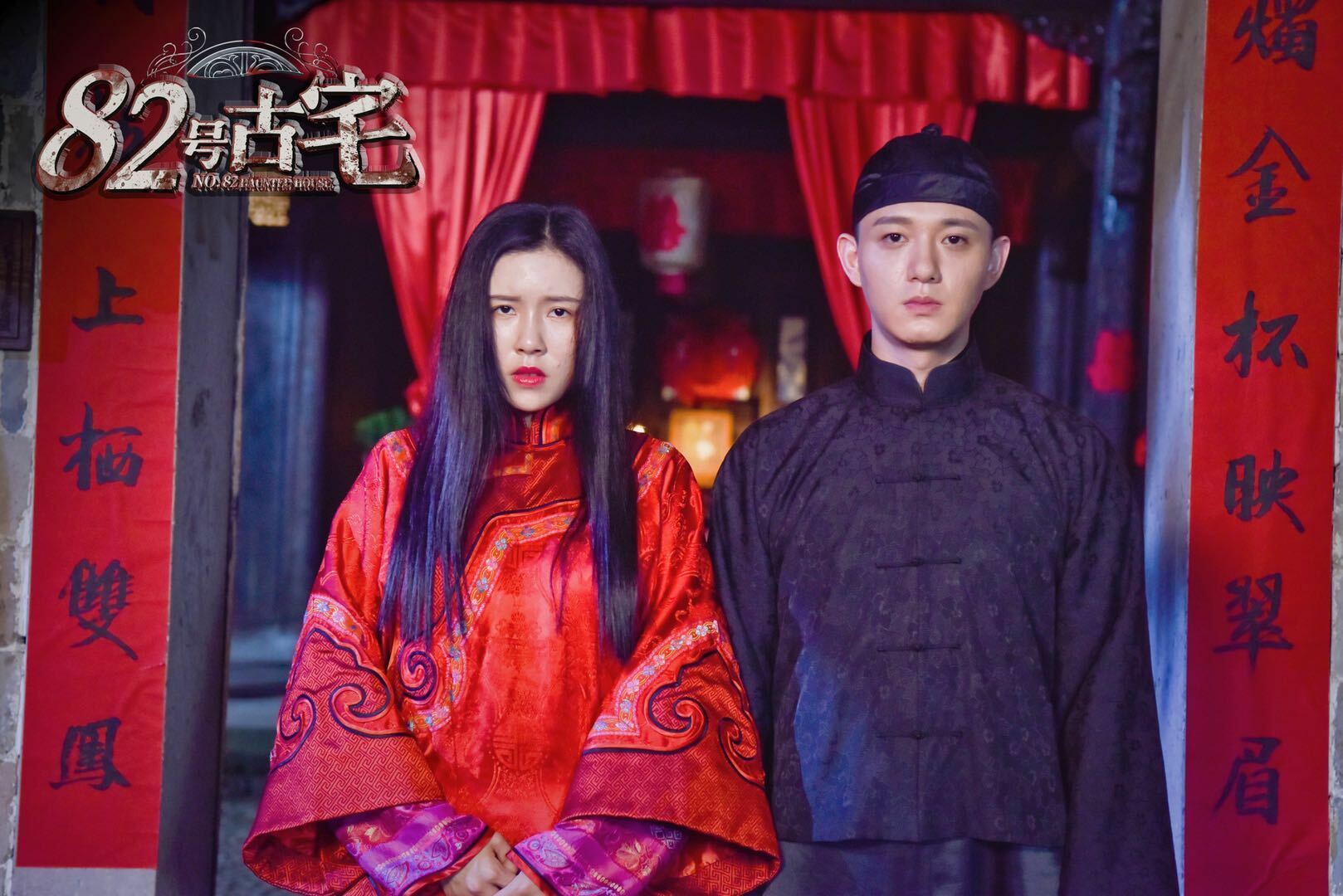 既然片名为《82号古宅》,所以整个剧情也多在这座"82号古宅"中发生。这是一座传统的商贾大宅,亭台楼阁穿墙越院,厚重的建筑使得阳光难以投射进来,先天就有种阴森森的感觉,到了夜晚,树影婆娑处更是宛若鬼影曈曈,简直就是恐怖事件的天然孵化场。而本片的故事,也确实在诡异的气氛中开场,安居在这座老宅的,是一代富商慕家,大公子慕卓远婚期临近,全府上下喜气洋洋,却未料准新郎未待到大喜之日却突然暴毙,令整个慕府愁云惨淡,而后又发生了一系列的奇事,比如让那个丫鬟殉葬,三姨太突然发疯……似乎整个慕府,都被恶毒诅咒。