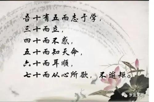 子曰:“吾十有五而志于学,三十而立,四十而不惑,五十而知天命,六十而耳顺,七十而从心所欲,不逾矩。”