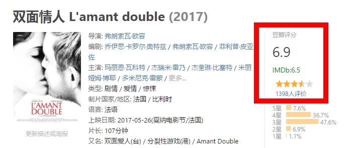 总之,《双面情人》带有欧容一贯的大尺度调性,总是在不伦恋的掩护下去发现内心最深处的灵魂归宿。