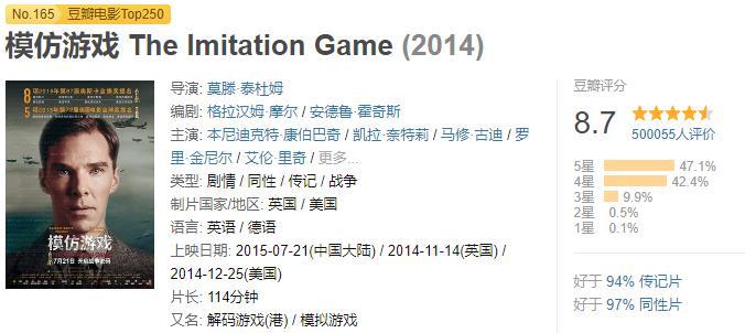 电影《模仿游戏》改编自安德鲁·霍奇斯编著的《艾伦·图灵传》,上映后获得了第87届奥斯卡最佳改编剧本奖。