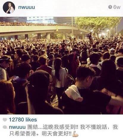当然,最过分的是,她在社交媒体上支持某活动(看图就知道是啥活动了),并配文道:团结,这晚我感受到,我不懂说话,我只希望香港,明天会更好!