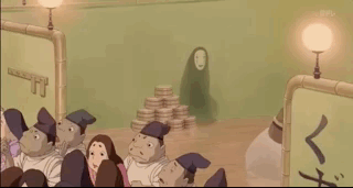 找寻着受伤白龙的千寻在油屋中遇到了无脸男。