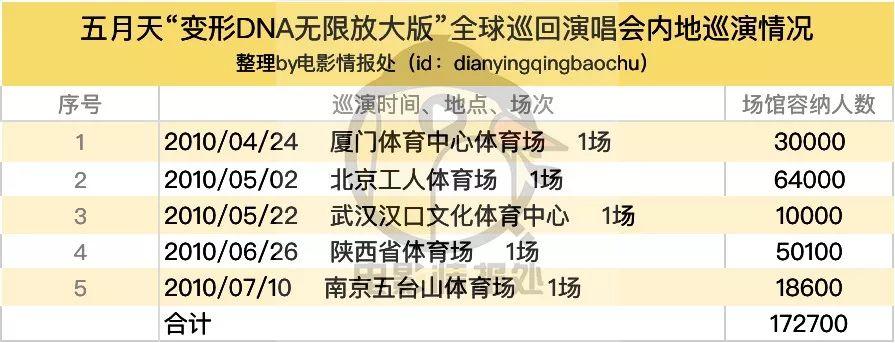 当然这两者之间也有着“彼消此涨”的微妙联系。《五月天追梦》的“变形dna无限放大版”全球巡回演唱会,5场内地巡演预计覆盖超 17万的歌迷,按照当时影片40.7的平均票价计算,影片预计能回收大概692万,然而最终2326万的票房也远远超过了这一成绩。