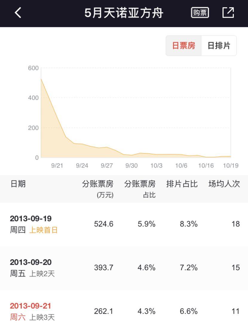 《5月天诺亚方舟》日票房走势