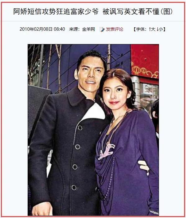2006年,媒体突然爆出阿娇搭上贵公子,与香港富二代f4”之一的林孝贤秘密拍拖。