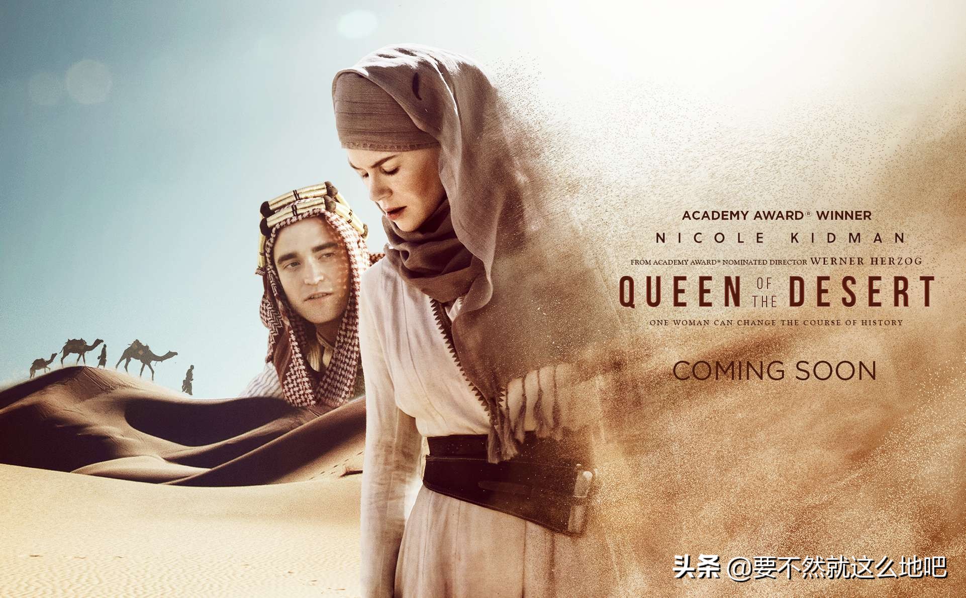 妮可·基德曼,詹姆斯·弗兰科,戴米恩·路易斯,罗伯特·帕丁森领衔主演,毕竟是女性人物的传记故事,妮可·基德曼担任女主角,她是沙漠女王,也沙漠中高挂的一轮明月。