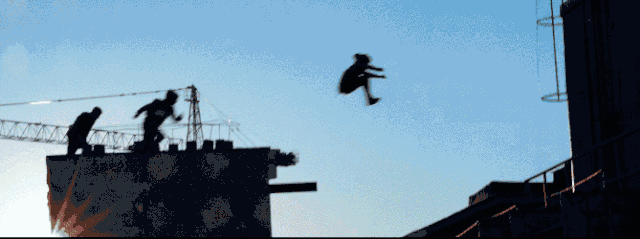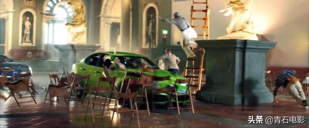 在影片的前半段,他就从意大利的大教堂圆顶毫无安全措施,飞奔而下刺激亮相。