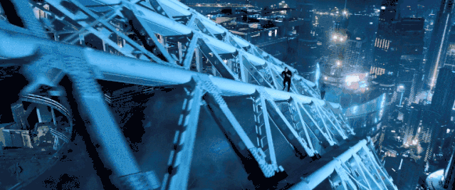 影片以第一视角和第三视角切换,几个跑酷者在高低层之间翻越,高空爬钢架,真刺激。