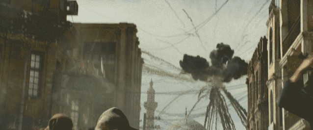 毒气弹的乌烟爆炸,无数的碎片飞射留下的弯弯曲曲的轨迹,细节相当到位。