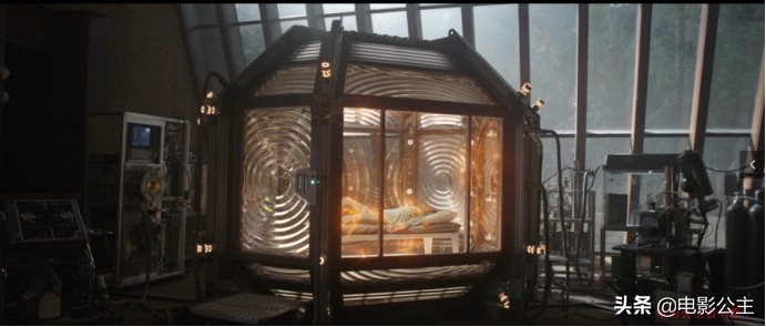 抢走他们实验室的是个女人,她一回家,脱掉外套,就看见身体忽明忽暗,她呼吸紧促的立马进入刚好放下一张床的大容器里躺下了,容器开始运转,她感觉很舒服的躺着。