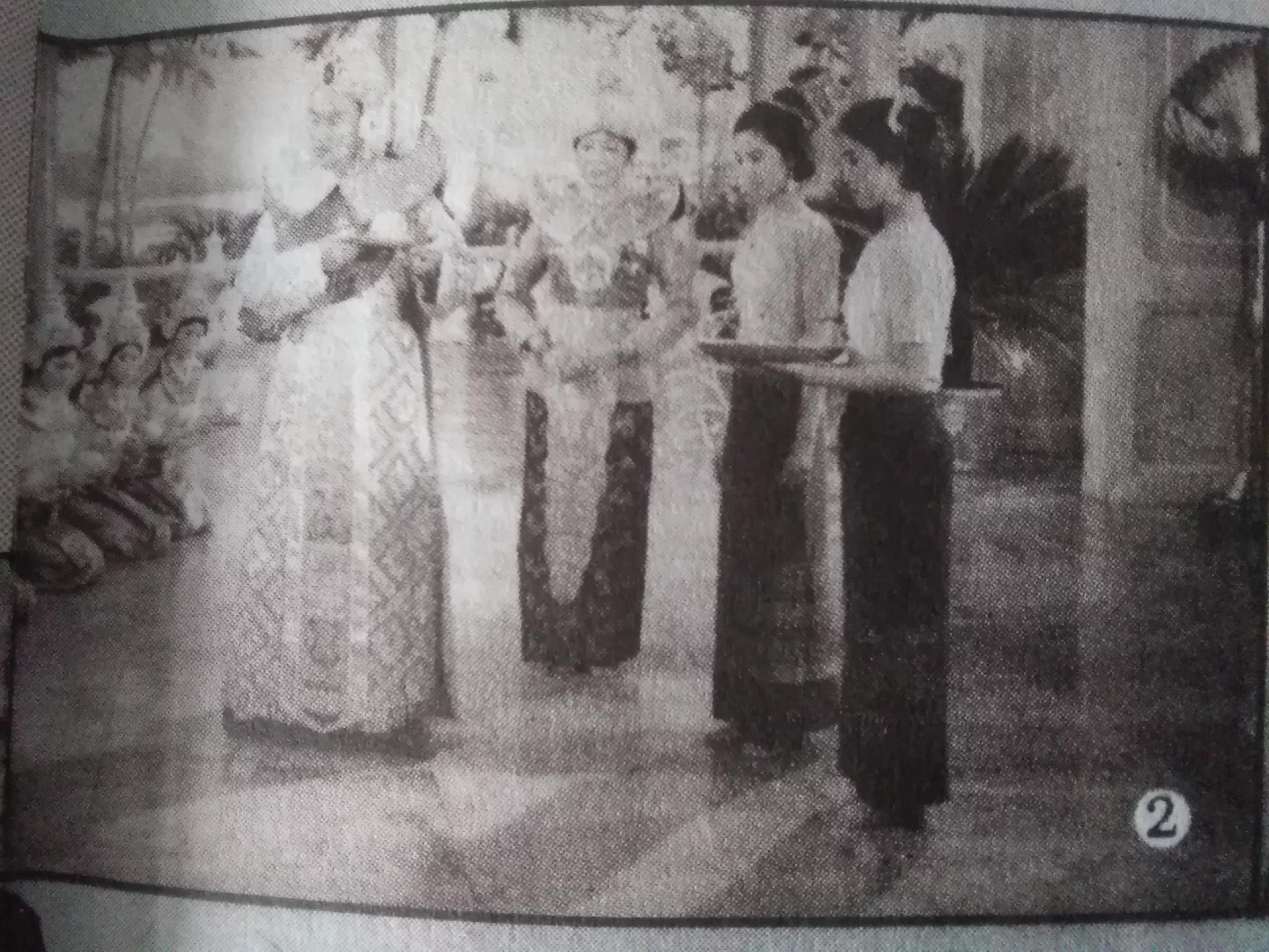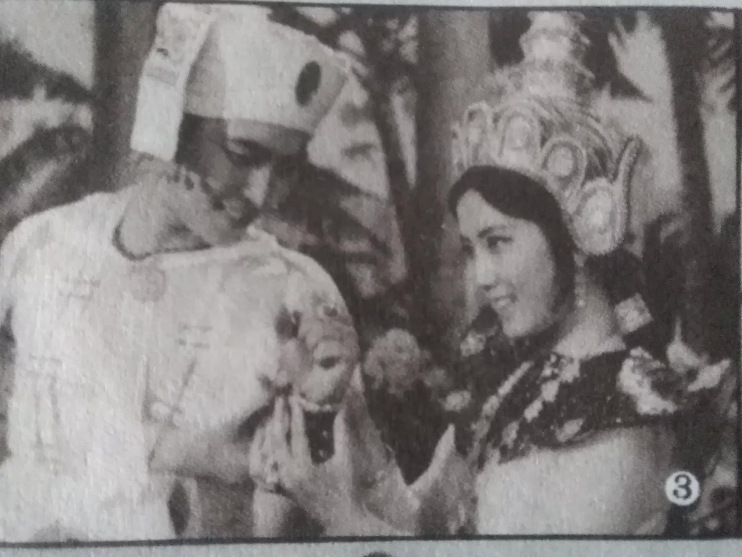 图2.勐奥东板国王(吴桂岭饰)给七个公主赐芒果。
