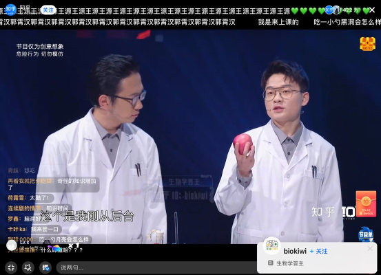 知乎答主现场作答,吃一小勺大肠杆菌会怎样?吃一小勺星云会怎样?等知乎宇宙热门话题,弹幕直呼,太硬核了,这很知乎!信息量太大了,我在知乎看晚会,上网课!