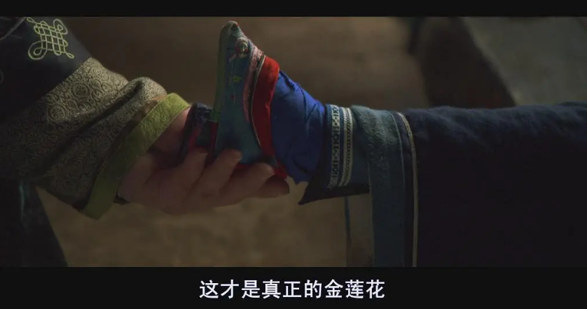 片中让人印象深刻的一幕就是,现代部分李冰冰脱下穿了一天的高跟鞋,揉着酸痛的脚,然后镜头突然转到古代,动乱中逃难的百合山路走到“小脚”都渗出了血,“裹小脚”和“高跟鞋”代表古今不同形式对女人的束缚,这其中的痛,也只有女人自己才懂吧。