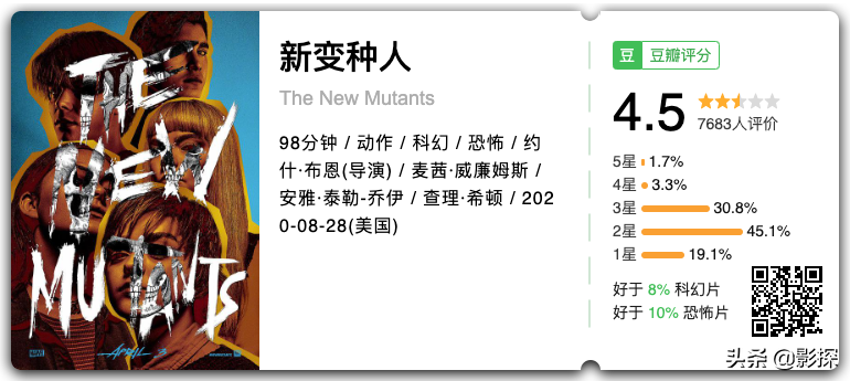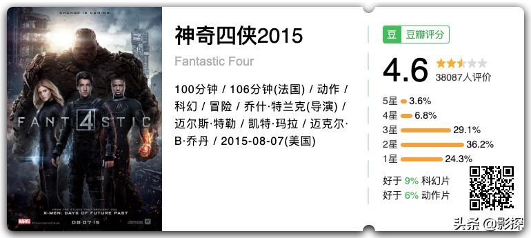 豆瓣评分4.5,甚至比《神奇四侠2015》还要低。