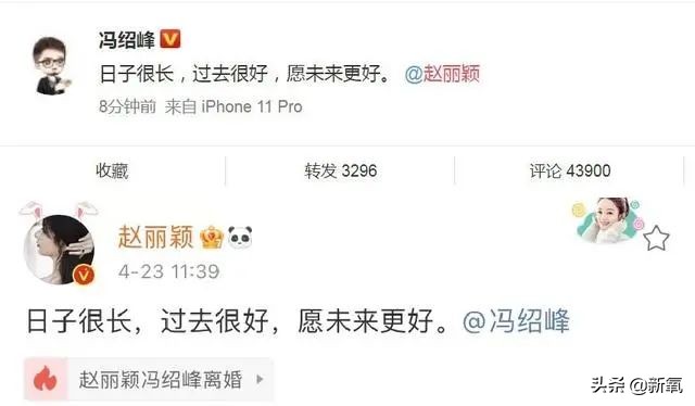 氧叔对这两人的婚姻状况,印象还停留在官宣结婚时冯绍峰有些僵硬的眉毛。虽说时过境迁,但突然公布,对于吃瓜群众来说也挺惊讶的。