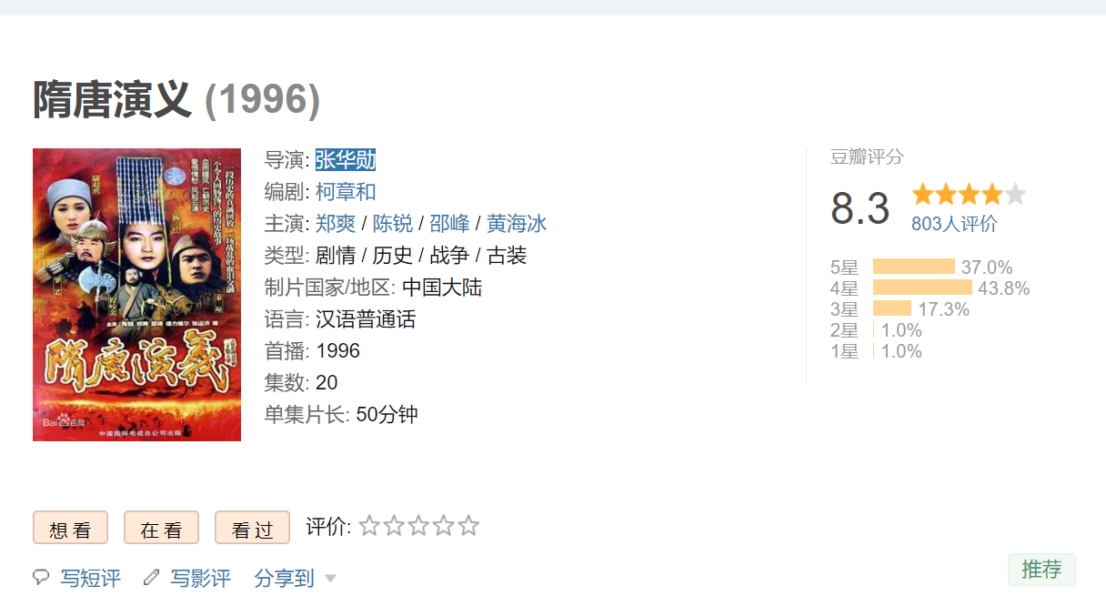 这部剧的名字叫《隋唐演义》。导演张华勋,他执导的第一部电影叫《神秘的大佛》。编剧叫柯章和,他还有一部作品叫《武则天》,主演是刘晓庆。