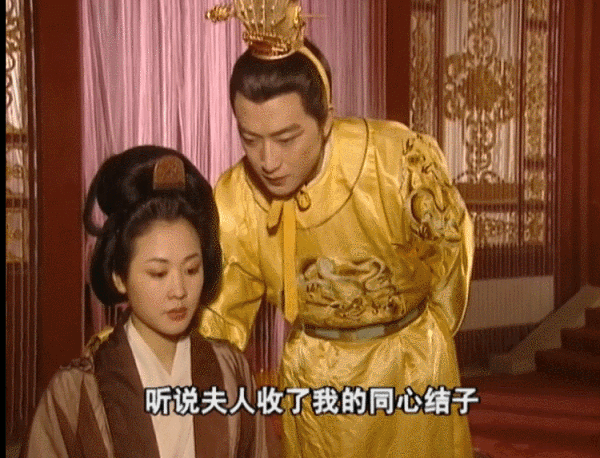 在登基前,杨广派人给宣华送去了一个盒子。宣华以为是要赐她死的鸩酒,战战兢兢地打开盒子,却发现里面是对同心结。她身边的侍女们欢欣鼓舞,纷纷恭贺宣华娘娘找到了新靠山,宣华却面色苍白。