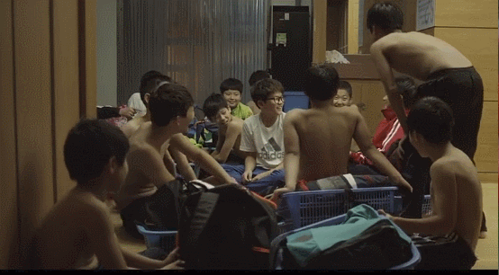 相比起母亲的沮丧,俊浩比赛后的状态却是很自在,和其他游泳小将们坐在一起,打闹聊天,光是能游泳,他就很开心了,并不在意名次。