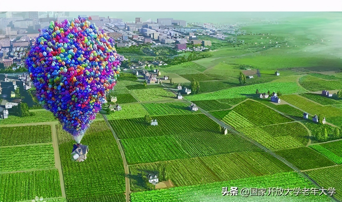 不过,他并不是打算一个人去,而是和他的屋子一起去,因为卡尔在屋顶上系上成千上万个五颜六色的氢气球。