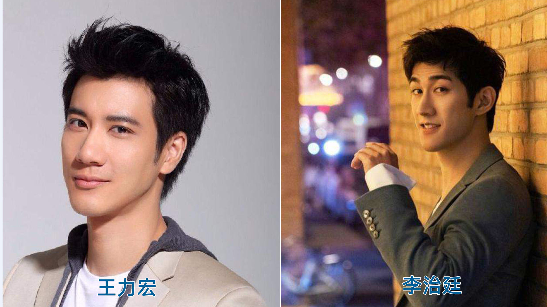 这一对真的是太像了,我严重怀疑演艺公司找这样的艺人就是因为李治廷太像王力宏了。当看他和范冰冰主演的电影《一夜惊喜》时,我还不认识李治廷,盯着看了好久就是为了确认是不是王力宏,最后觉得这位演员太年轻太嫩了,不是王力宏。