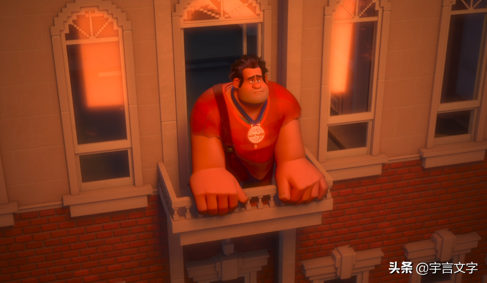 叙事线的引子,是拉尔夫的自白:睡在远离人群的砖头堆里,只能和其他游戏里的坏人说说话,同一游戏里的人,从未把他当成他们的一份子。他唯一能做的,是遥遥奢望。明明也是游戏中的重要人物,却因为做坏事,在他人心中如同尘埃。