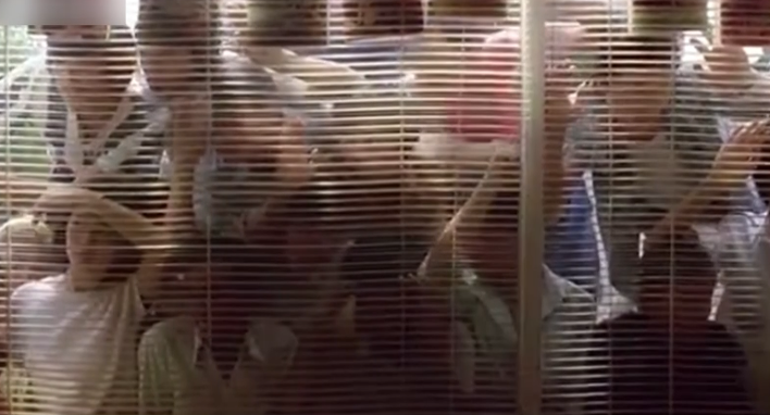 电影结尾,青青因为那一脚的疯狂被抓,在最后的指认现场的报刊亭两姐妹无言对视,而窗外则是一群,疯狂想食那人血馒头的,看热闹不嫌事大的,叽叽喳喳的围观看客,报刊亭的百叶窗甚至还营造出了,动物园里看客们看笼中困兽的既视感。