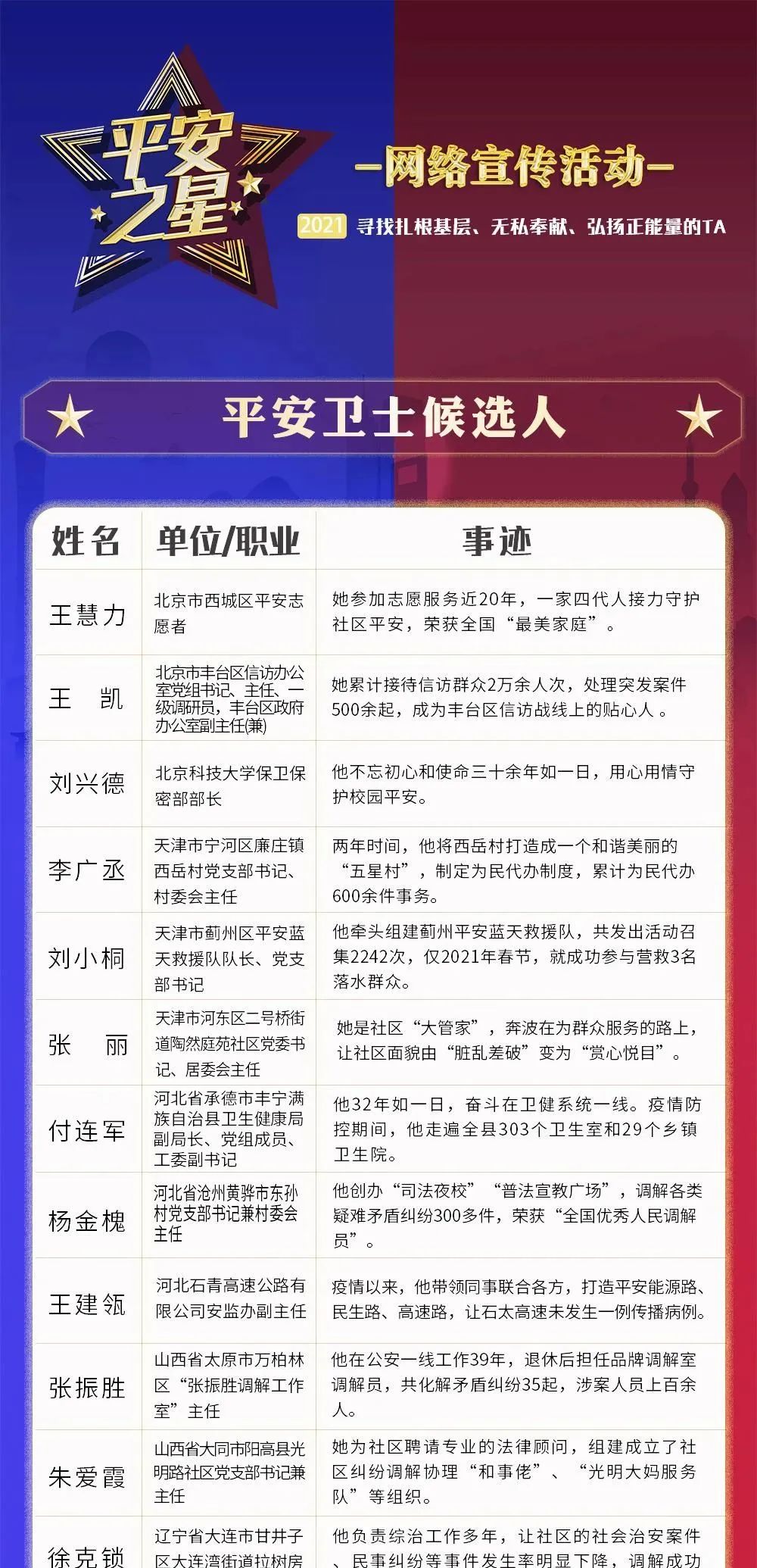 和100位“平安卫士”候选人