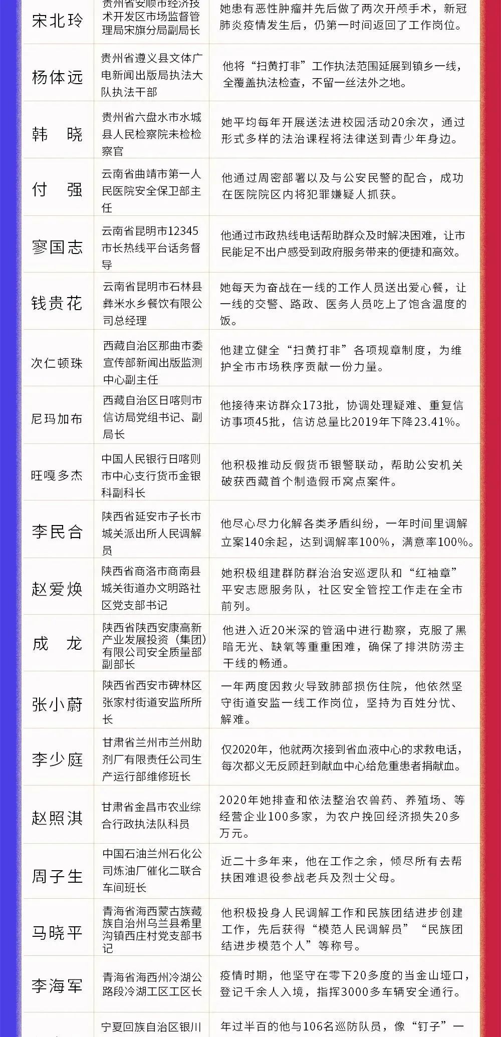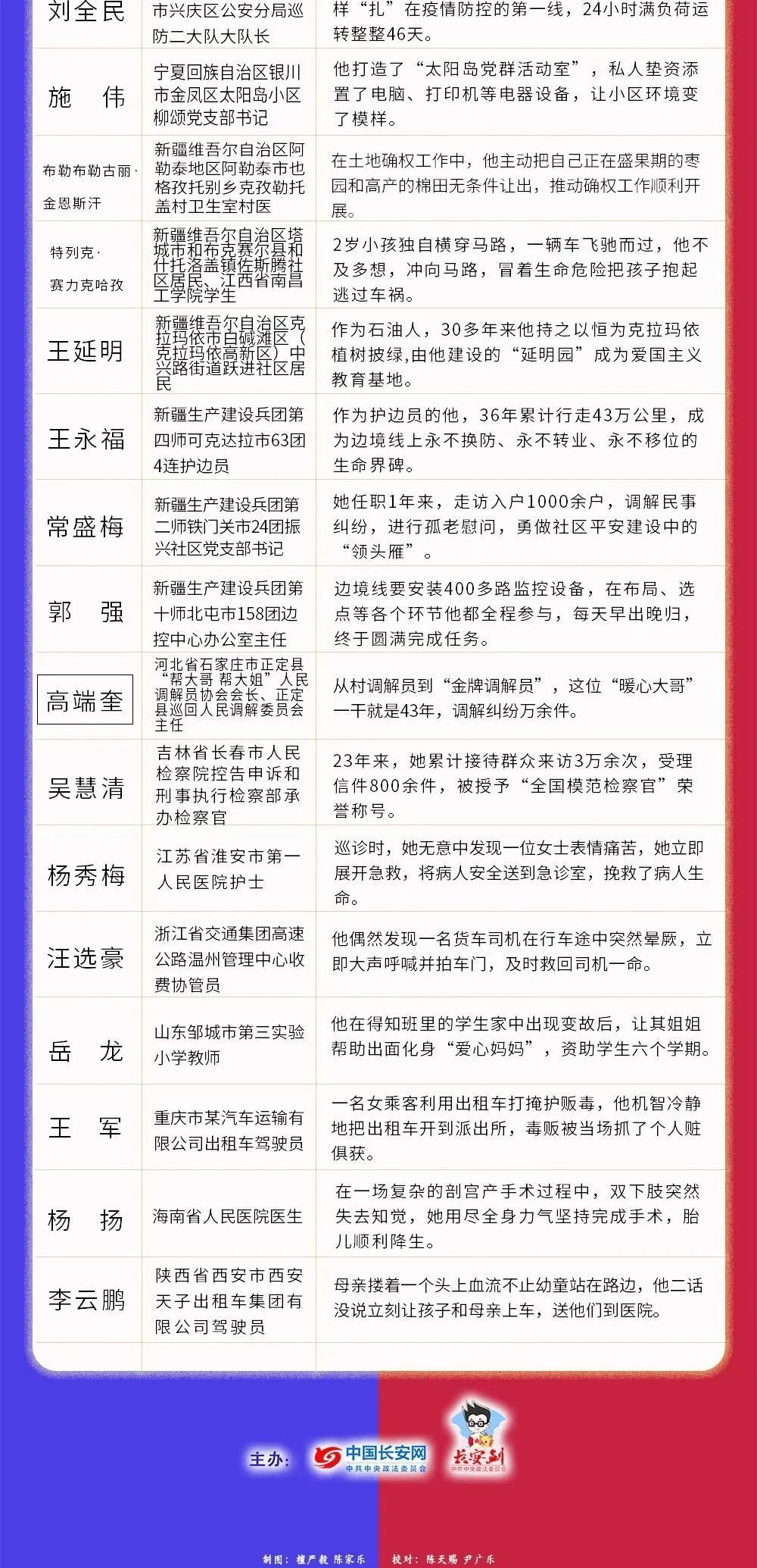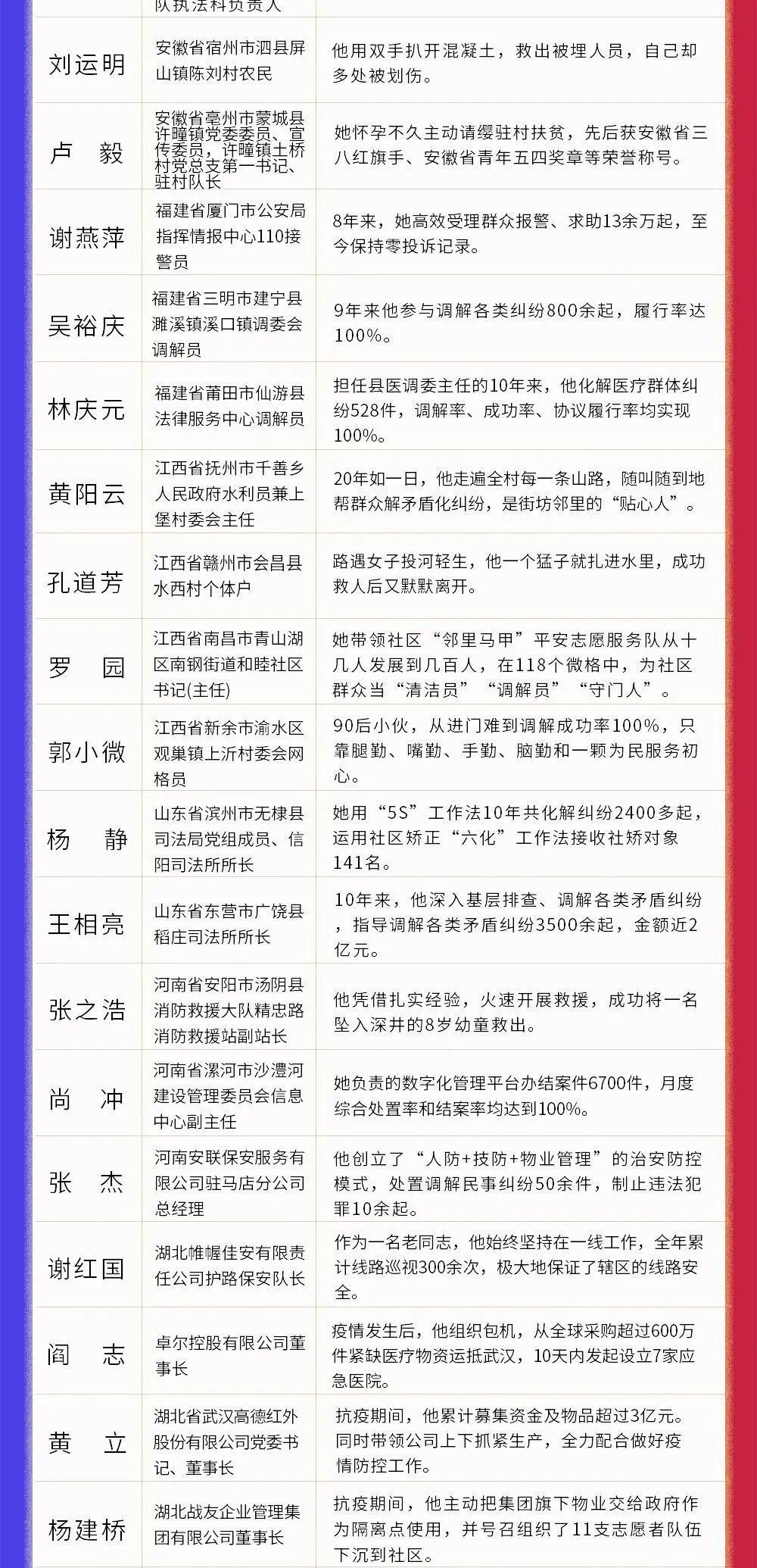 200位“平安英雄”候选人