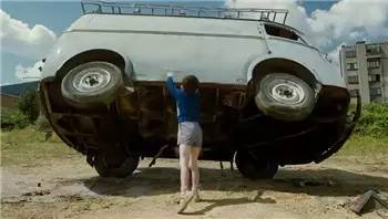 其实他们早已在车的另一边榜上了大石头,所以他人在另一边轻轻推……