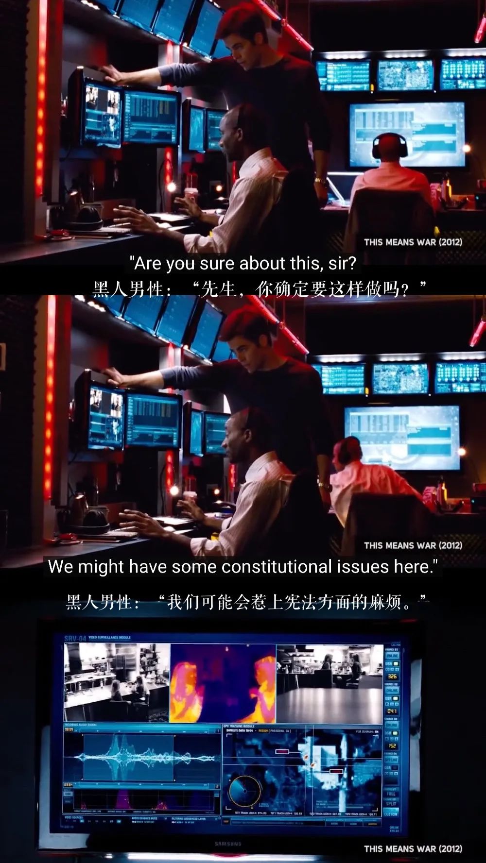 ▲《特工争风》(this means war)中特工男主要求高科技人员对自己心仪的女性进行监听与监视的行为。除开隐含的法律责任,各式各样的骚扰行为也会让被骚扰者产生严重的负面情绪,而诸如不适感、恐惧及尴尬等负面情绪给被骚扰者带来的精神负担,通常很少被追爱男主们纳入考虑。