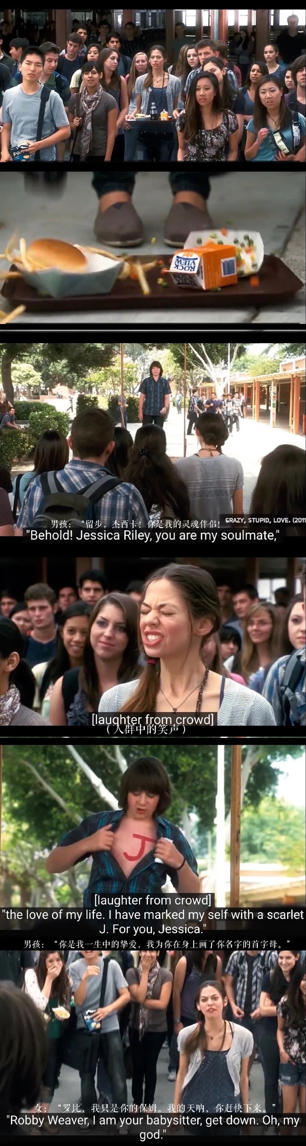 如电影《疯狂愚蠢的爱》(crazy,stupid,love)(2011)中,男性角色全然不顾女性的感受,肆无忌惮地通过当众展示「爱的纹身」向女主表白,令女主既愤怒又尴尬。