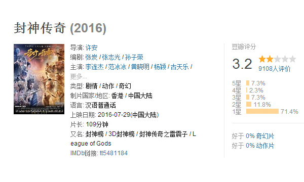 1.《封神传奇》(豆瓣3.2分,目前正在直线下降)