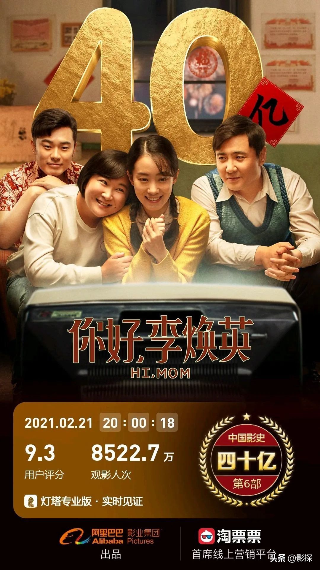 影片上映第10天,内地票房累计破40亿,在中国影史排名第6。