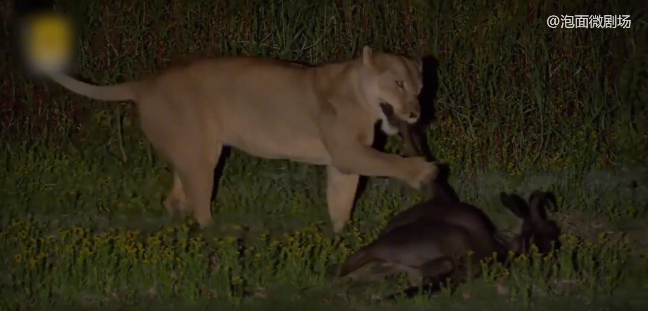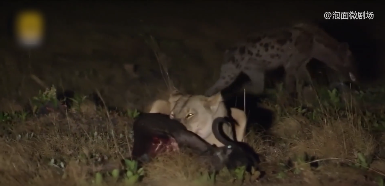 这天晚上 ,柳瓦夫人捡到了个便宜,有头母牛羚因为难产 ,发出了痛苦的哀嚎,它无声无息地接近 将其扑倒,牙齿巨大的咬合力 ,瞬间让母牛羚结束了痛苦,因为猎物轻松到手, 柳瓦夫人玩心大起,拨弄着猎物的尸体,但它没注意的是 ,那群讨厌的鬣狗又来了,它们不声不响地从水路包围了柳瓦夫人,故技重施将其引开 ,偷走猎物尸体。