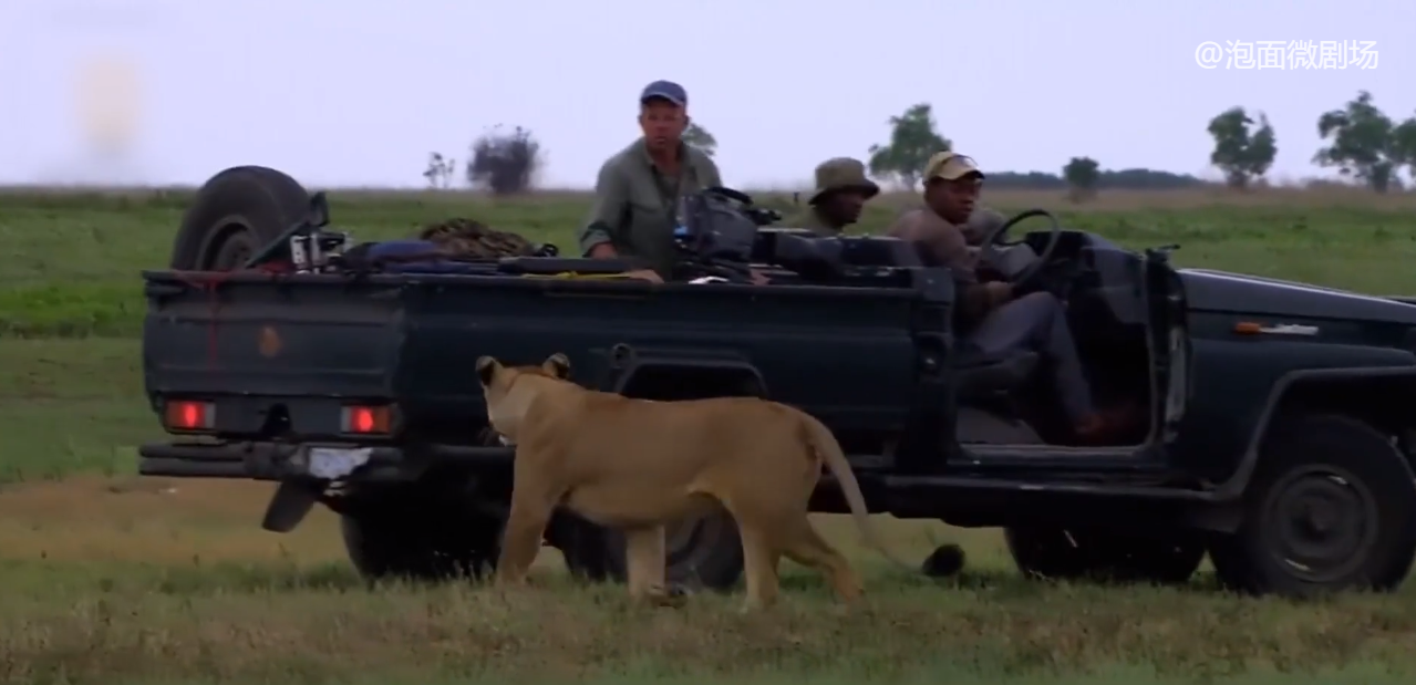 这只狮子躺在摄制组的车子旁边,露出圆圆的肚皮伸手冲着摄影师打招呼,晚上回营地之后 ,它还跟了过来,躺在帐篷外面 ,像个小马达一样打着呼噜,这绝对是非洲大草原上, 最不怕人的野狮,也许是因为单身久了,柳瓦夫人看人类都眉清目秀的,偶尔它在外面散步的时候,都允许摄制组的车子跟在后面,后来, 它对摄影师赫伯特的喜欢,甚至到了撕烂越野车座椅,找存在感的地步。