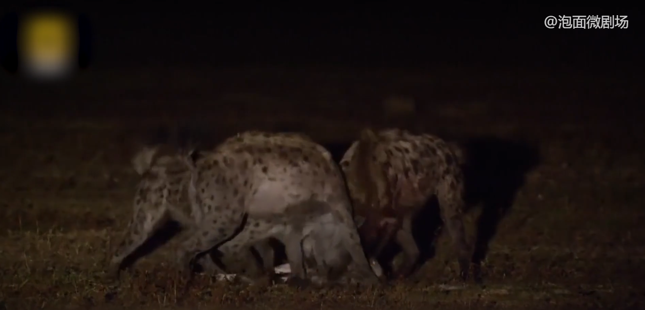 夜幕降临 ,素有非洲二哥之称的鬣狗出来活动了,它们悄悄靠近 其中几只发出声响,引走正在进食的柳瓦夫人,另外几只则轻松地偷走猎物,等柳瓦夫人发现时,吃了一半的小牛羚尸体,已经被二哥们拖走了,鬣狗猥琐的笑声 ,仿佛在嘲笑它轻易上当,但柳瓦夫人并没有去抢回猎物,这点食物还不至于让它跟6只鬣狗打上一架。