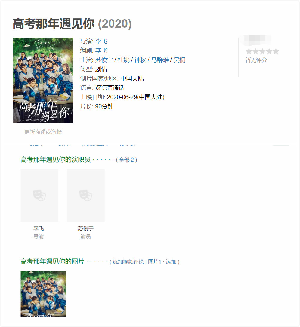 评分没有就算了,评论也只有66条,连导演和演员的照片都无。