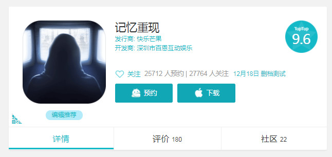 12月10日,几个月过去了,《记忆重构》终于出了续作——《记忆重现》,又可以看电影了(并不是),游戏taptap评分高达9.6分。