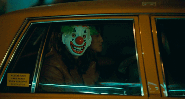 街上的暴民都戴着他那标志性的小丑面具,亚瑟在警车里认出了他,他的反应是灿烂的微笑。