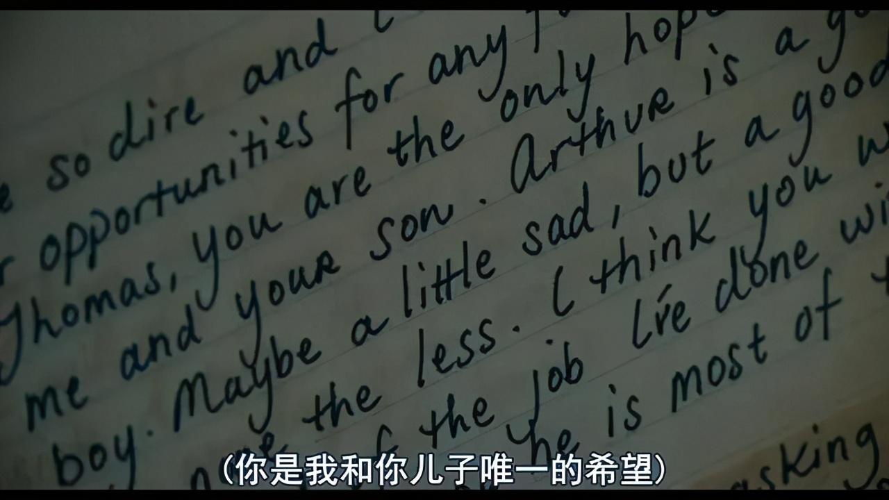 到了楼梯间,亚瑟打开文件,仔细地看了看.里面不仅有他母亲的病,还有他的收养证明。更令人绝望的是,这份文件说她小时候经常被她母亲的男朋友虐待,而她的男友却对她视而不见。
