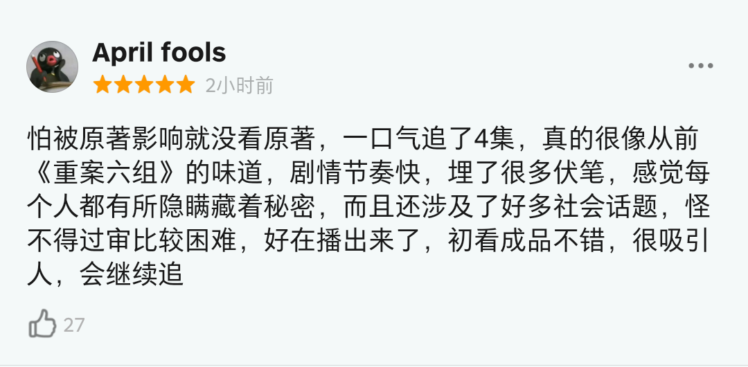还有观众表示:「看出了《重案六组》的味道。」