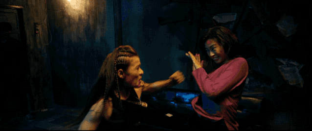 这不单单是出自于女性主角的性格特征,而是东亚武术相比西方硬刀硬枪的「真家伙」械斗,更强调拳脚功夫以柔克刚,这在某种程度上也影响了本片的气质。