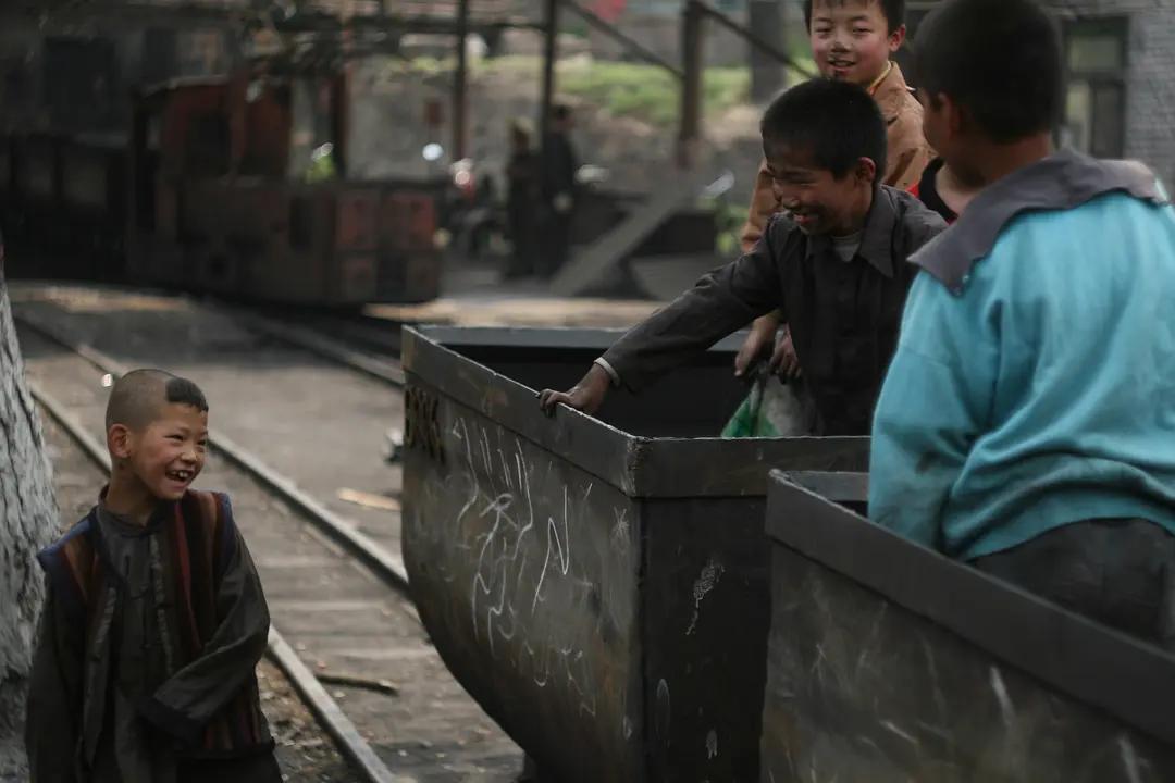某次,傻儿子被别的小孩骗到矿车上玩。