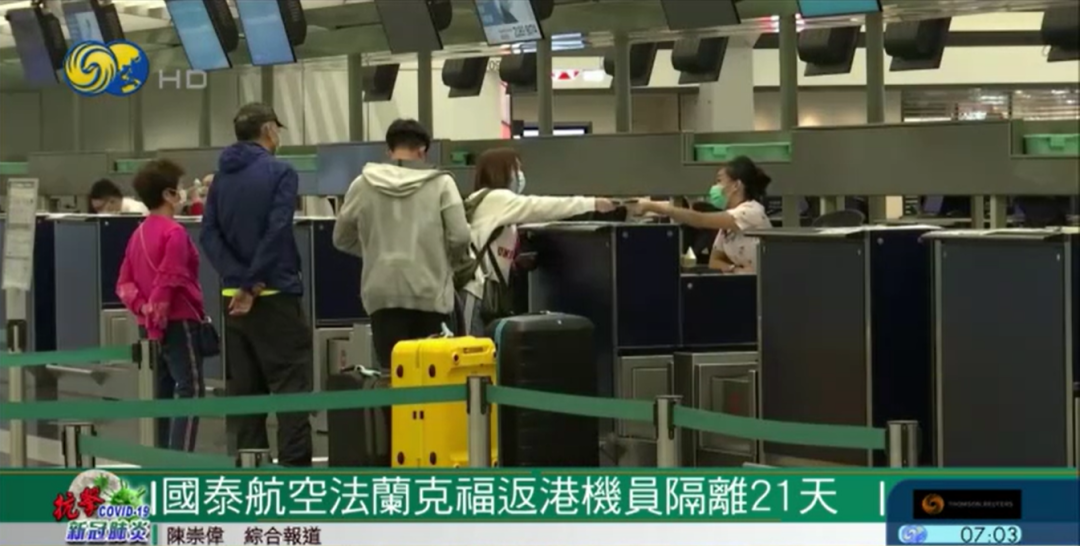 另一方面,国泰航空公司由于一名德国来香港的机组人员,检测样本呈阳性,宣布于本月1日起,曾逗留法兰克福的机组人员,抵港后要前往政府检疫设施,隔离检疫21天。