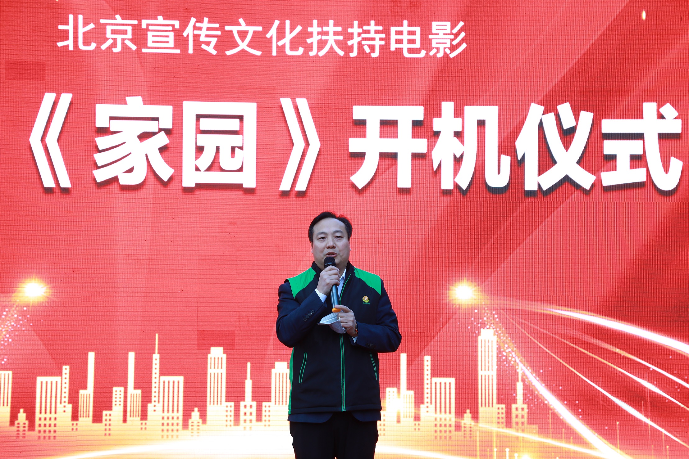接着,三笙影业董事长杨文海与剧组导演杨真先后进行了发言,为大家简单介绍了这部电影的拍摄目的与意义,并预祝电影拍摄圆满成功。最后,制片方宣布开机正式启动,并组织全体剧组人员为电影的顺利开机送上祝福和期许。