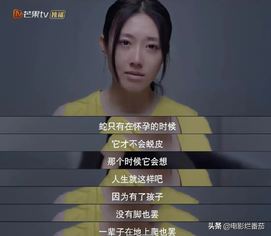 为女杀夫的周若君说:“蛇只有在怀孕的时候,它才不会蜕皮,那时候它会想,人生这样吧,因为有了孩子,没有脚也罢,一辈子在地上爬也罢。”